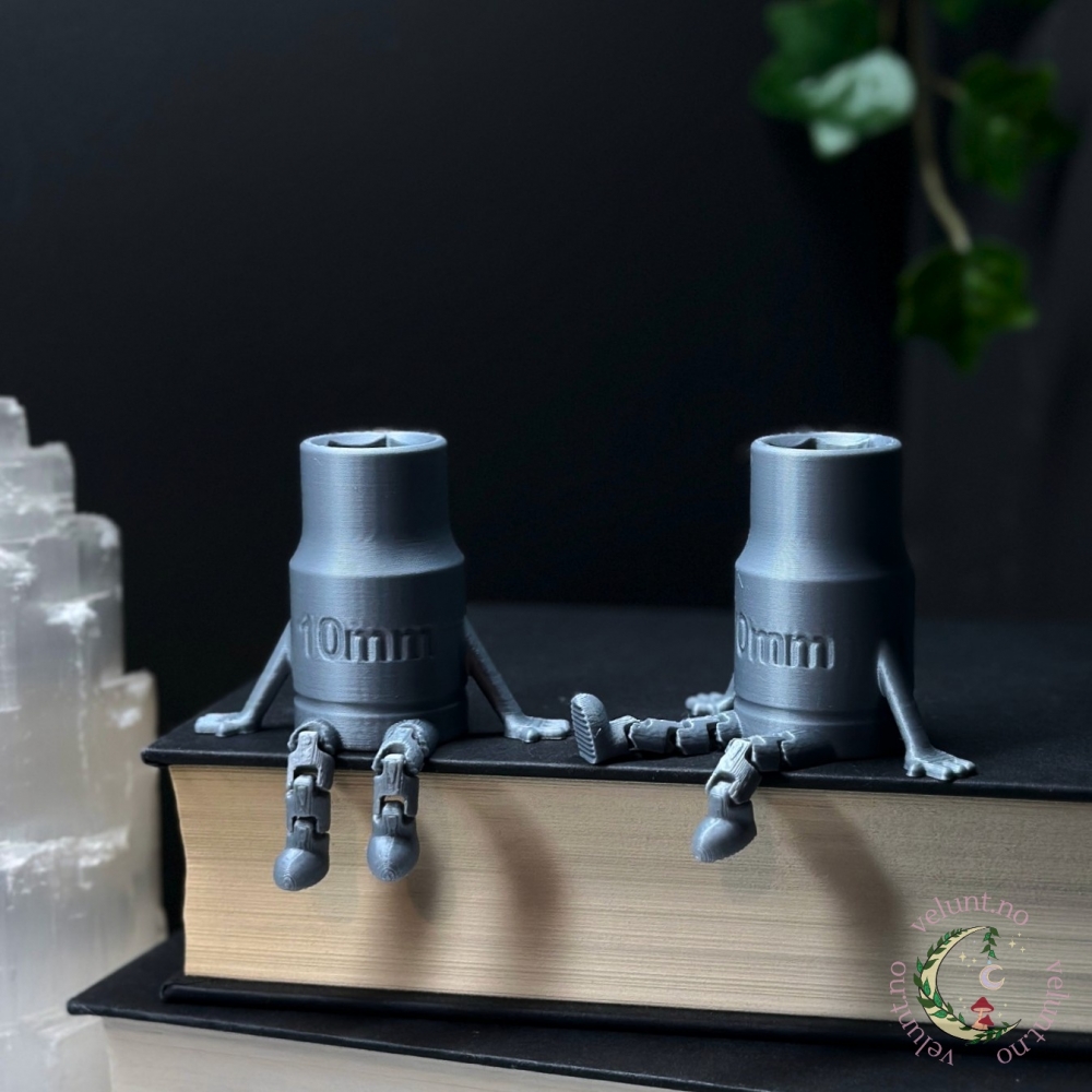 Denne unike og morsomme figuren er perfekt for å piffe opp ethvert rom. Enten du vil ha den i hyllen, på kommoden, på festbordet eller på kontoret, vil den garantert skape en leken og uformell stemning. Vår figur er nøye designet og 3D printet av oss i velunt.no, og den er laget med kjærlighet og omtanke for detaljer. Figuren sitter med føttene hengende over, og vil definitivt tiltrekke seg oppmerksomhet og skape smil hos alle som ser den.