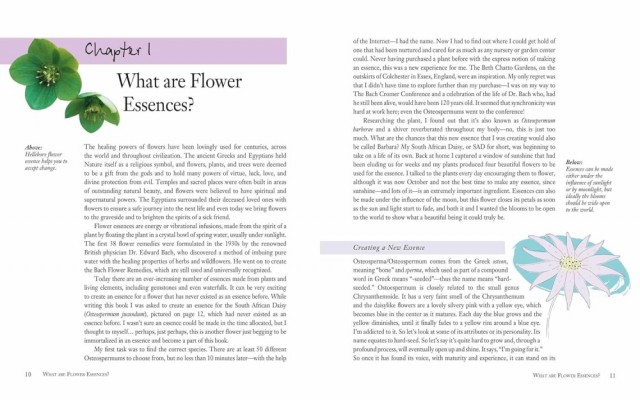 Boken inneholder også en praktisk A-Å guide som hjelper deg å finne riktige blomsteressenser basert på ulike behov og utfordringer - basert på forfatterens lange erfaring innen feltet.
