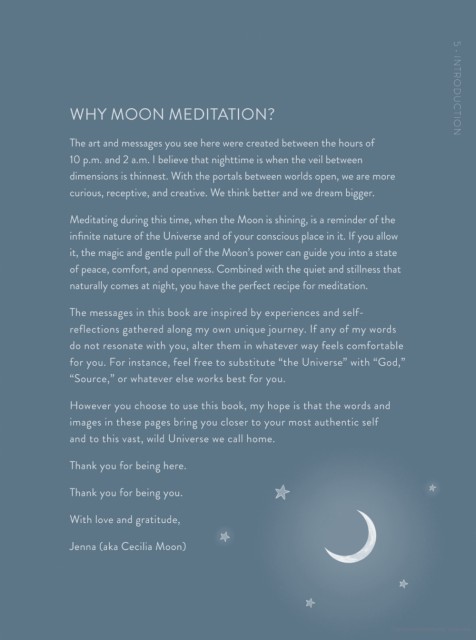 Moon Meditations av Jenna Calabro er en nydelig samling av 365 nattlige refleksjoner, skapt for å hjelpe deg med å gi slipp på dagen og finne ro før du sovner.