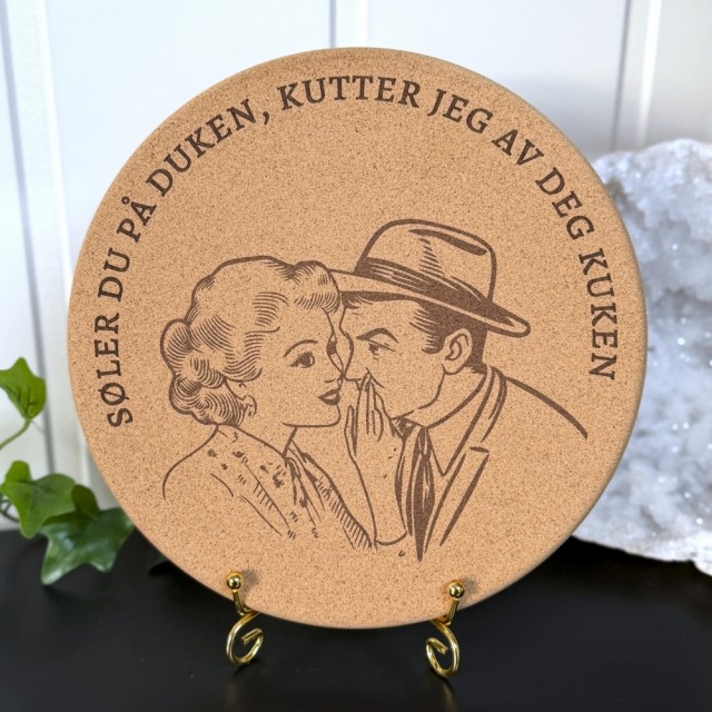 Alle gryteunderlagene graveres av oss, på bestilling. Hver bestilling behandles individuelt, og normal produksjonstid er ca 1-3 virkedager før sending.