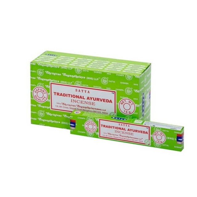 Satya Traditional Ayurveda er en dyp og naturlig duftopplevelse laget av urter, harpiks og planter brukt i Indias eldgamle ayurvediske tradisjon. Hver pinne er håndrullet i India med essensielle oljer som fremmer balanse mellom kropp, sinn og sjel. Når du tenner den, fylles rommet av en jordnær, beroligende aroma som bringer deg nærmere naturens rytme og stillhet.