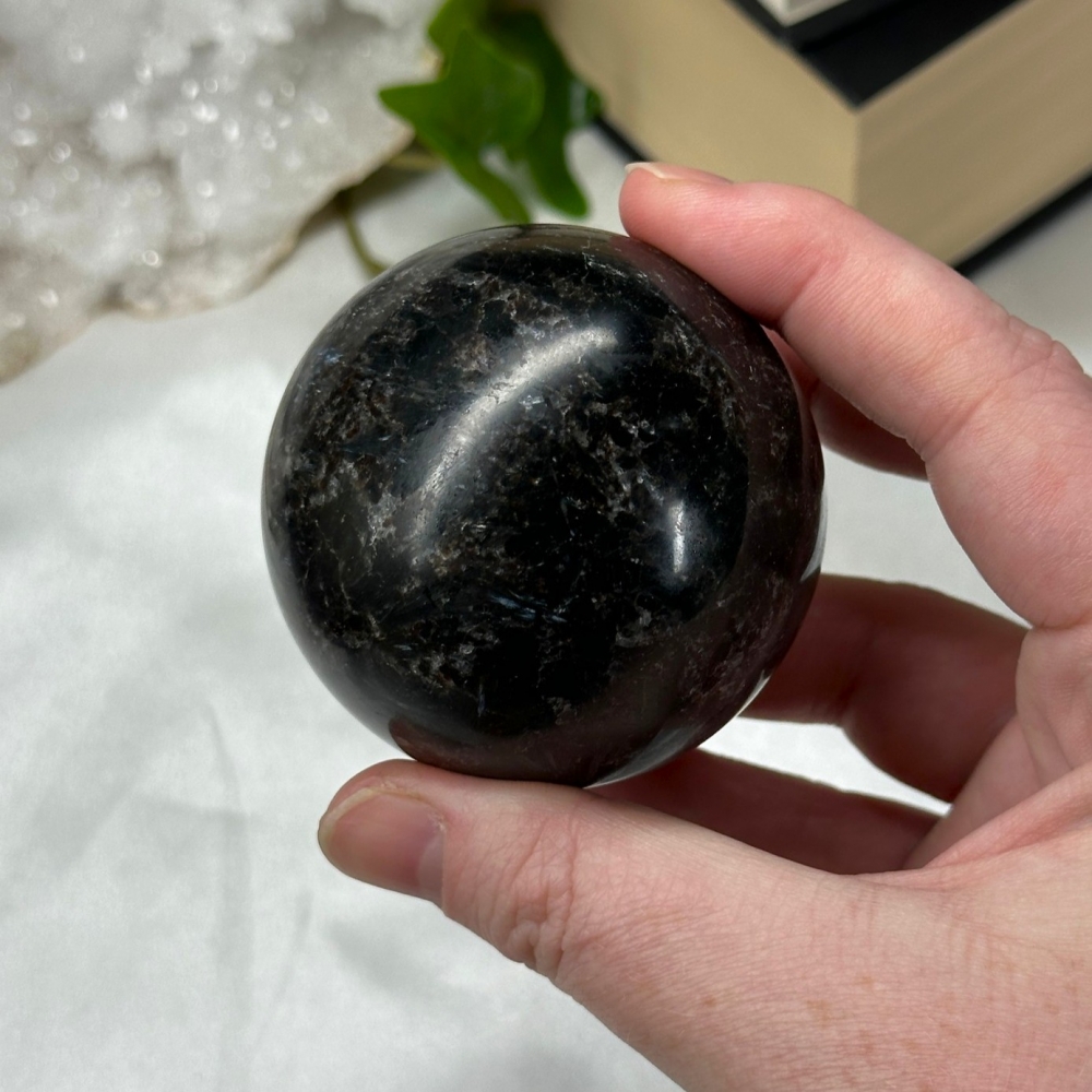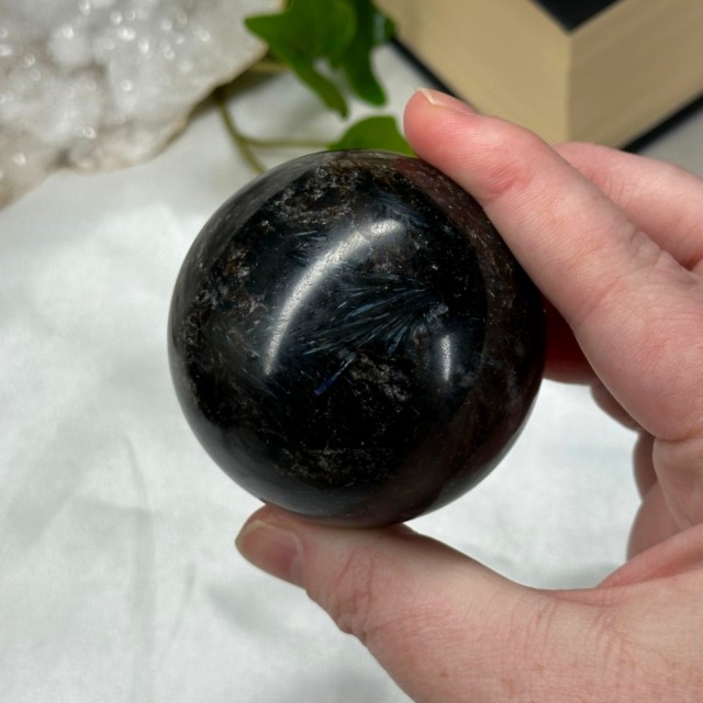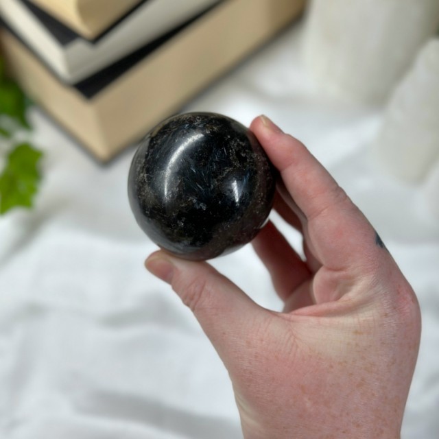En kraftfull Shungitt kule fra Karelia, Russland (7cm og ca 450g.). En naturlig beskytter og jordingsstein - et stykke urgammel magi. OBS: Shungitt kan avfarge.7cm og ca 450g.