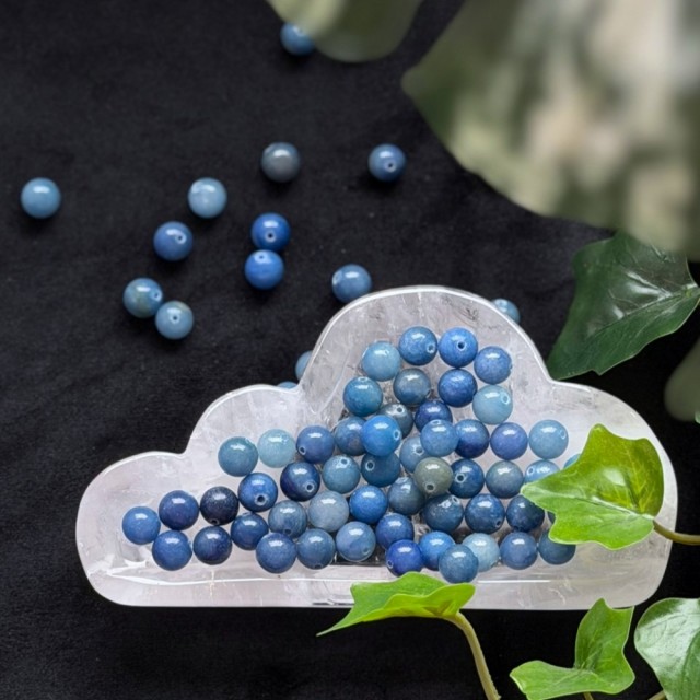 Myke 8mm Blå Aventurin perler i 10pk med dempet blå tone og naturlig glans. Forbindes med indre ro, mental klarhet og balansert energi. Perfekt til armbånd som symboliserer trygghet, selvkontroll og rolige, gjennomtenkte valg.