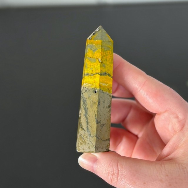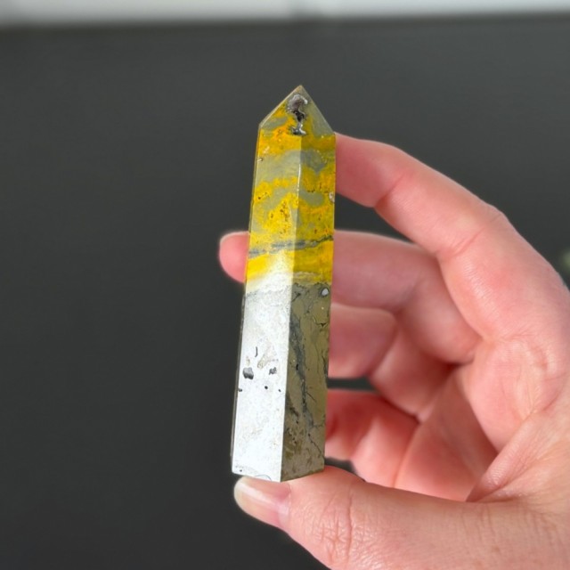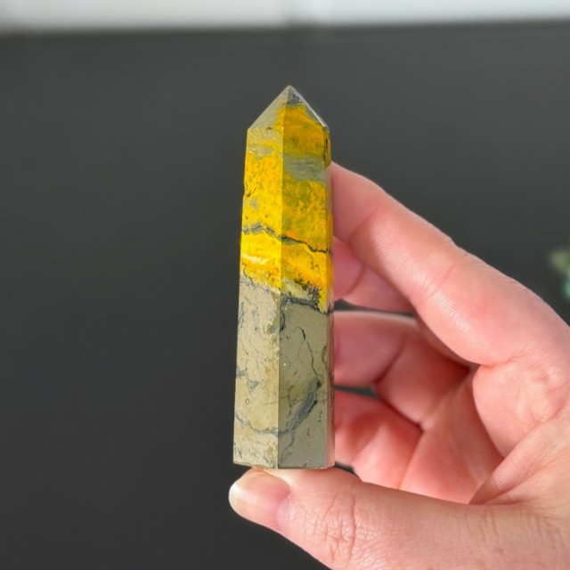 Bumblebee Jaspis er en av de mest energiske og livlige steinene du kan jobbe med. Med sine sterke kontraster og nesten elektriske farger, bærer den en intens energi som vekker deg, både mentalt og emosjonelt.