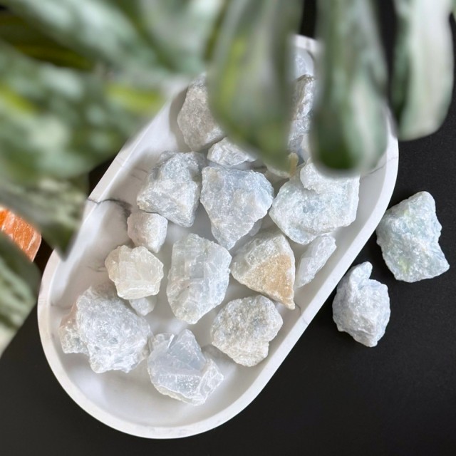 Den fungerer med halschakraet for å forbedre kommunikasjonen din, spesielt når du trenger å uttrykke følelsene dine. Plasser din Blå Kalsitt i favorittrommet ditt for å filtrere ut negativ energi.