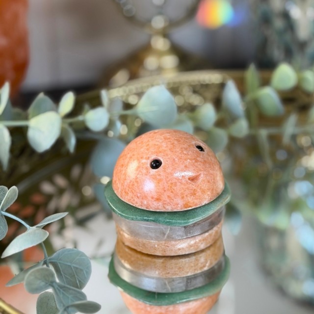 Sammen skaper disse steinene en kombinasjon av glede, balanse og styrke - pakket inn i en leken og uventet form. Dette er et perfekt samleobjekt for deg som elsker krystaller, men også setter pris på humor og personlighet i interiøret.