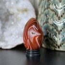 Nydelig juicy Karneol formet som et egg. Dette er 6,4x4x3,1cm og veier ca 108g. Det er den krystallen du ser på bildene du får hvis du bestiller denne. OBS: Bildene er tatt i studiolys.
