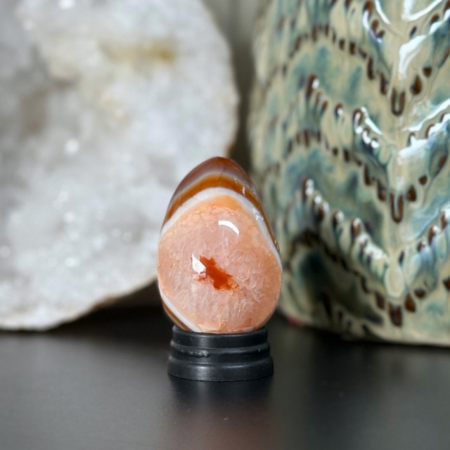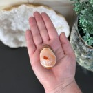 Nydelig juicy Karneol formet som et egg. Dette er5,3x3,5cm og veier ca 81g. Det er den krystallen du ser på bildene du får hvis du bestiller denne. OBS: Bildene er tatt i studiolys.