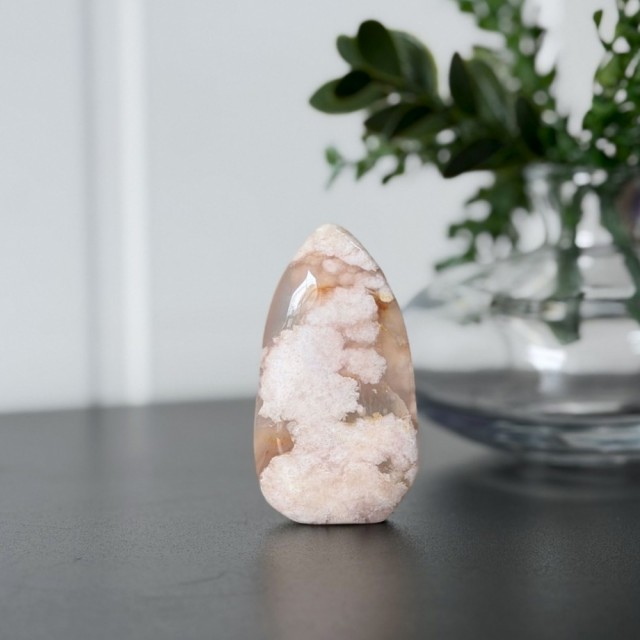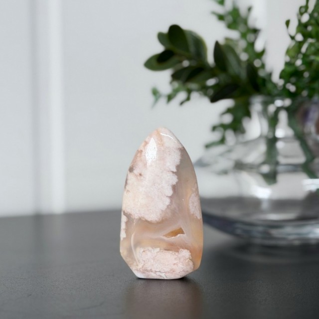 Blomster Agat minner deg om livets reise - fra frø til full blomst. En krystall for selvvekst, glede og nye begynnelser, som hjelper deg å blomstre i ditt fulle potensial. Denne er 5,3x3x1,2cm og veier 30,6g.