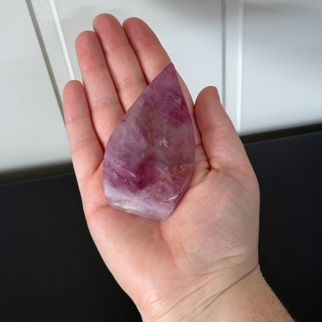 Plasser Rosa Fluoritt ved sengen for en roligere energi før søvn. Den er også fin å holde i hånden når du trenger å roe ned følelser eller finne tilbake til deg selv etter en stressende dag.
