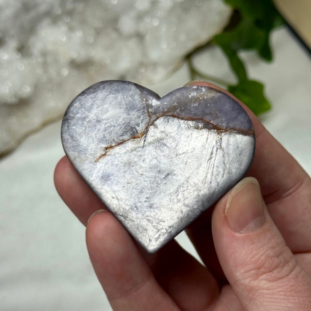 Nydelig skinnende Lepidolitt/Purple Mica hjerte. Dette nydelige hjertet har målene 5,5x5x1,4cm. Vekt: 53,3g. Det er den krystallen du ser på bildene du får hvis du bestiller denne.