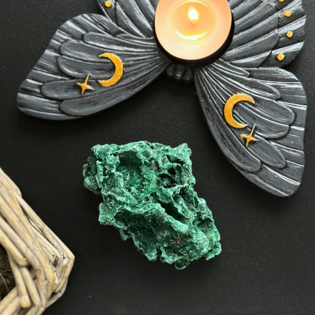 En vokter av hjertet, en healer av beinbrudd & blodtrykk, og en beskytter mot den giftige strømmen av negativ energi – Malakitt er en travel stein. Grønne krystaller ser alltid ut til å ha superstyrkekrefter og elsker å koble seg til hjertechakraet. Malakitt er intet unntak, og med sine energiske egenskaper gjør den en fantastisk jobb med å oppmuntre deg til å gi slipp på gamle traumer og mønstre og å gå utenfor komfortsonen din.