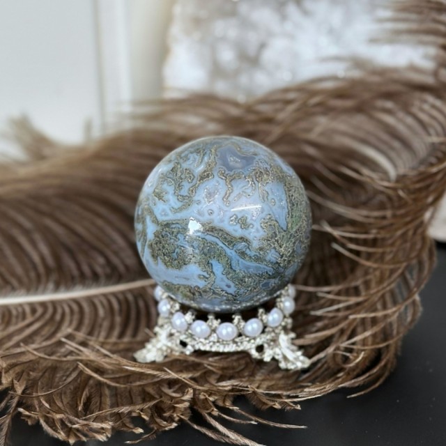 Små Mose Agat kuler på 2cm. Prisen er per stk og det vil bli tilfeldig plukket ut til deg. Alle disse er ganske mørke i fargen.