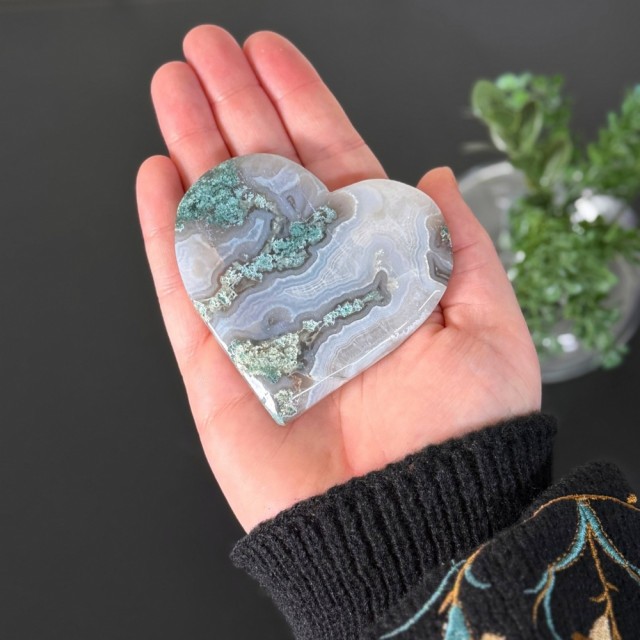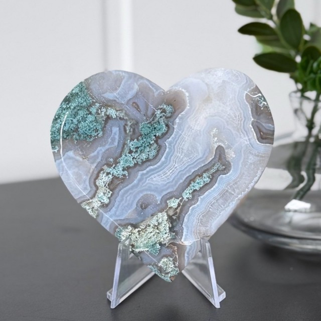 Mose Agat åpner hjertechakraet, og hjelper kjærlighet og overflod til å flyte fritt. Den oppmuntrer til å pleie vennskap, bygge nye relasjoner og finne fred i de du allerede har. Mange opplever også at Mose Agat fremmer kreativitet og selvutvikling - som en påminnelse om at vekst alltid er mulig, uansett hvor man er i livet.