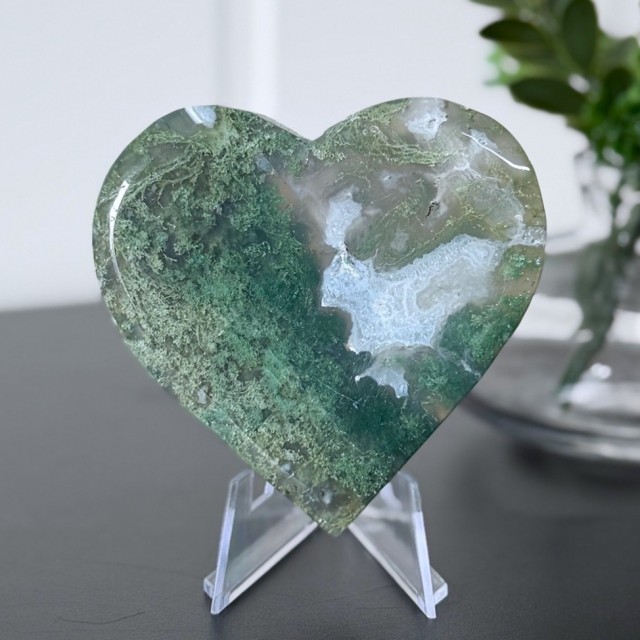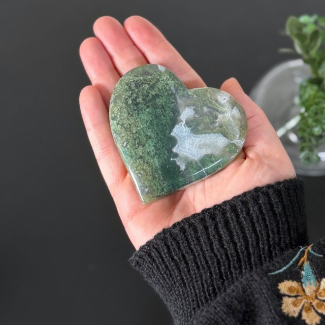 Mose Agat åpner hjertechakraet, og hjelper kjærlighet og overflod til å flyte fritt. Den oppmuntrer til å pleie vennskap, bygge nye relasjoner og finne fred i de du allerede har. Mange opplever også at Mose Agat fremmer kreativitet og selvutvikling - som en påminnelse om at vekst alltid er mulig, uansett hvor man er i livet.