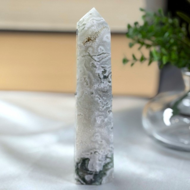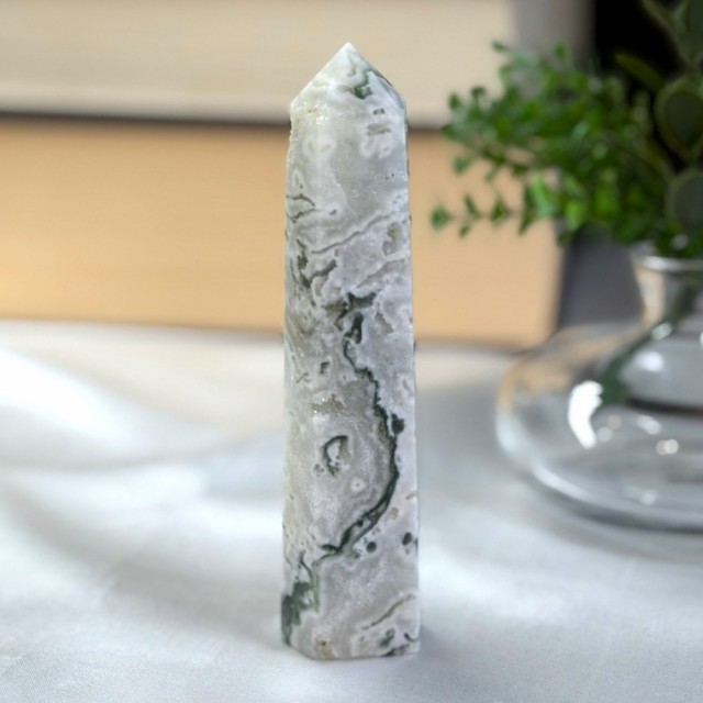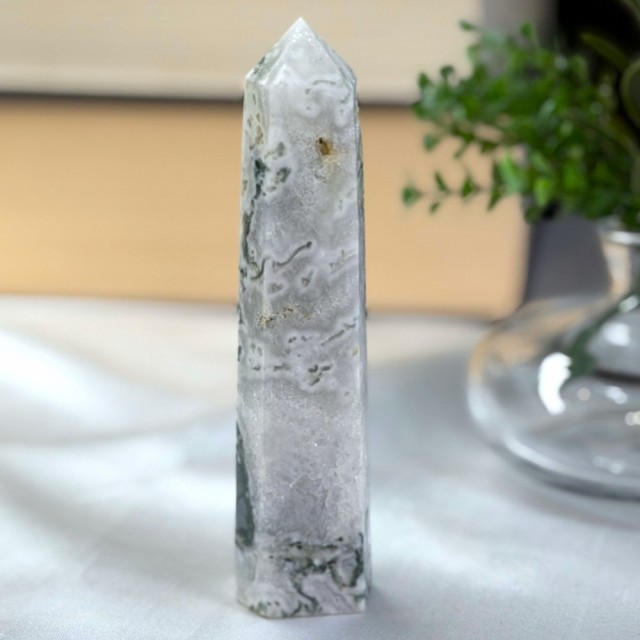 Mose Agat er en krystall som føles som naturens egen stemme.. rolig, helbredende og alltid til stede. Den har lenge vært sett på som en lykkebringer og en vokter av naturens krefter. Mange tror den fremmer vekst og velstand, ikke bare for mennesker, men også for planter. Legger du Mose Agat i nærheten av blomster, sies det at de spirer og blomstrer enda rikere.