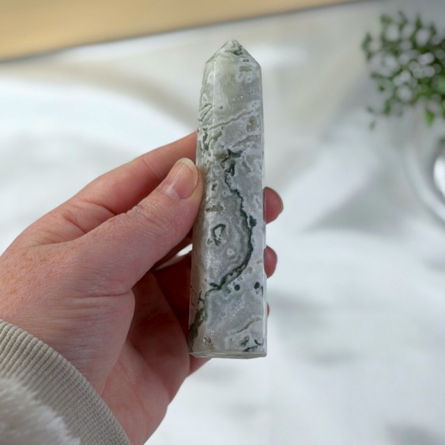 Å holde en Mose Agat er som å holde et levende stykke Moder Jord - en krystall som både beskytter, inspirerer og helbreder, mens den minner deg på at du alltid er en del av noe større.