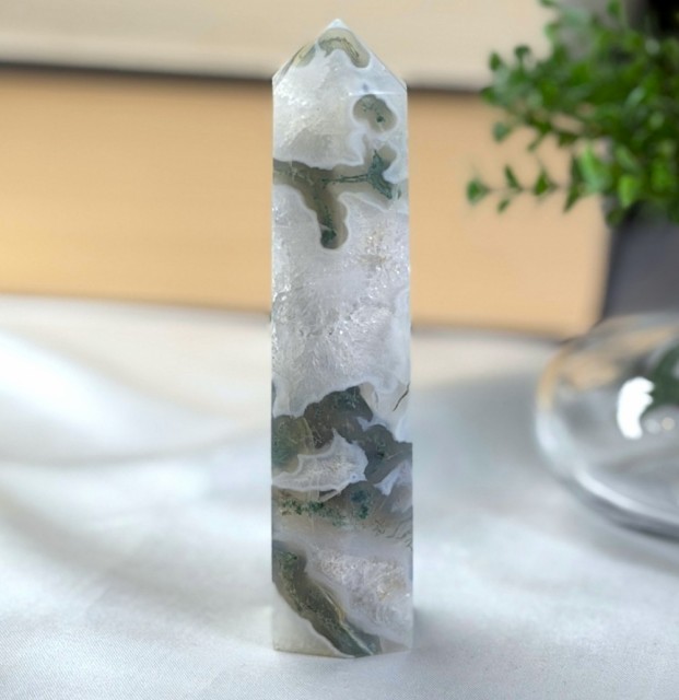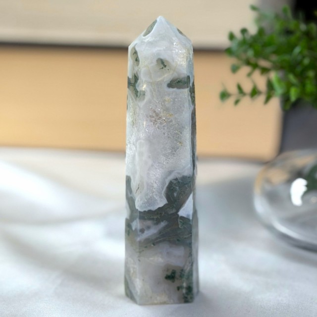 Mose Agat er en krystall som føles som naturens egen stemme.. rolig, helbredende og alltid til stede. Den har lenge vært sett på som en lykkebringer og en vokter av naturens krefter. Mange tror den fremmer vekst og velstand, ikke bare for mennesker, men også for planter. Legger du Mose Agat i nærheten av blomster, sies det at de spirer og blomstrer enda rikere.