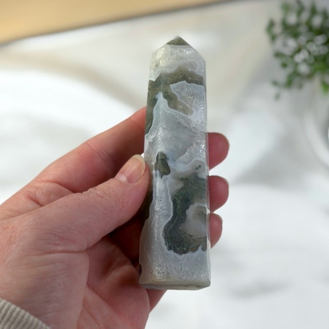 Å holde en Mose Agat er som å holde et levende stykke Moder Jord - en krystall som både beskytter, inspirerer og helbreder, mens den minner deg på at du alltid er en del av noe større.