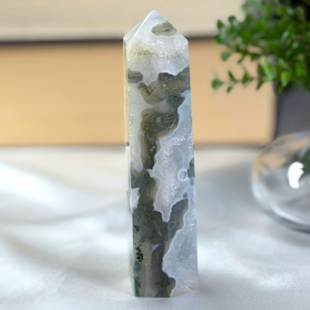 Som en levende bit av Moder Jord forbinder Mose Agat deg til naturens rytmer. Den sprer velstand, ro og harmoni. Rett og slett som en magisk skogstur i krystallform. Dette tårnet er 11,1cm og veier 158,1g. Små merker forekommer.