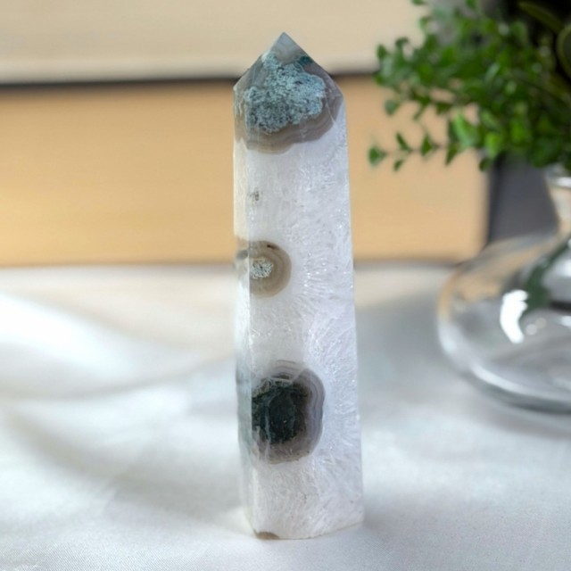 Mose Agat er en krystall som føles som naturens egen stemme.. rolig, helbredende og alltid til stede. Den har lenge vært sett på som en lykkebringer og en vokter av naturens krefter. Mange tror den fremmer vekst og velstand, ikke bare for mennesker, men også for planter. Legger du Mose Agat i nærheten av blomster, sies det at de spirer og blomstrer enda rikere.