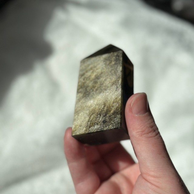 Gold Sheen Obsidian er en beskyttende og jordingsstein, som er spesielt bra for alle som befinner seg i trøbbel eller rett og slett er misfornøyd med livet sitt. Den minner oss om at vi er i stand til å løse våre egne problemer, og oppmuntrer oss til å ta ansvar for retningen livet vårt er på vei. Den avslører forsiktig hva som virkelig fungerer i livet vårt og hva som holder oss tilbake. Den oppmuntrer oss til å gi slipp på menneskene, vanene og troen som ikke lenger tjener oss. Gold Sheen Obsidian hjelper oss å skape balanse i livet vårt, og å dyrke mer fred og glede.
