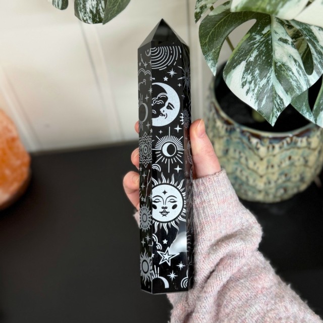 Svart Obsidian er som en energisk skjoldbærer - en intens og rå kraft som beskytter, jorder og forvandler. Den avslører sannheter, løfter sløret mellom det bevisste og ubevisste, og hjelper deg å møte deg selv - uten filter, men med kraft.