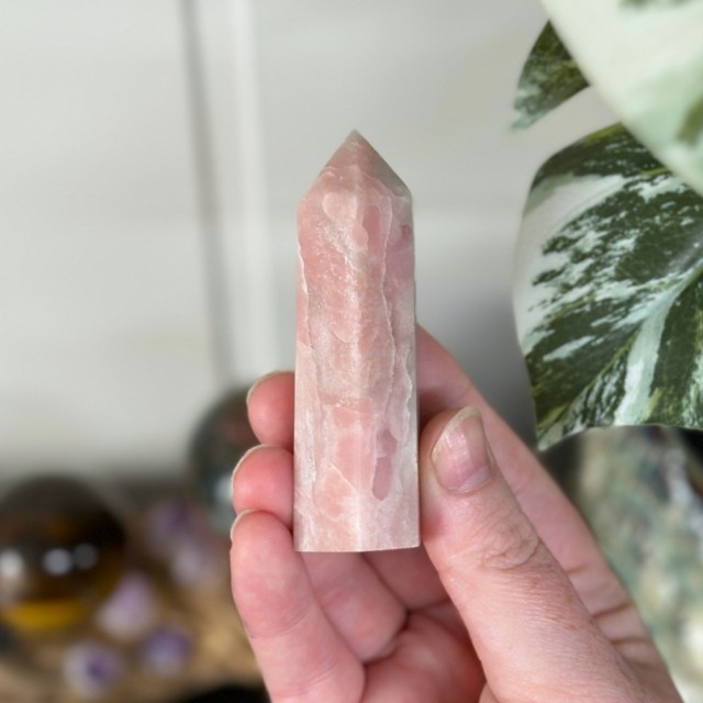 Nydelig Rosa Bånd Kalsitt håndstein. Denne er 6cm lang og 1,5cm tykk. Veier ca 61,9g. Det er den krystallen du ser på bildene du får hvis du bestiller denne. Små minimale merker kan forekomme.