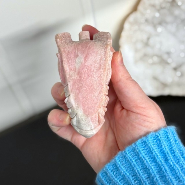 Rosa Opal er en mild og kjærlighetsfull krystall som åpner hjertet, roer sinnet og gir trøst ved sorg, stress og uro. Den fremmer selvkjærlighet, tilgivelse og fred, og bringer håp og glede tilbake i hverdagen. Denne er 9,9x5,1x5,8cm og 387g.