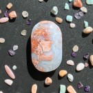 Liten Cotton Candy Agate/Rosa Agat håndstein. Denne er 5,6x3,3x1,3cm og veier 41g. Dette er en relativ ny stein, den sies å være av hvit Kalsedon med Jaspis nyanser av rosa og fersken farge.