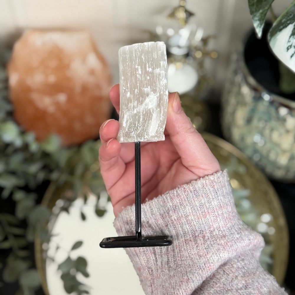 Søtere enn honning og melk, Selenitt begynner å jobbe umiddelbart med å hjelpe deg med å kvitte deg med angst og bekymringer som kan tynge hjertet. Dette er en stein som elsker å være lett, som ønsker å vokse vinger, og som ikke ønsker noen form for anker eller bånd fra katastrofal tenkning. For å hjelpe deg med å frigjøre deg fra disse sammenfiltrede tankene, begynner Selenitt først med å hjelpe deg med å lette deg selv ved å tenke med krystallklar klarhet. Den hjelper deg å bli bevisst på omgivelsene dine og gir upåklagelig dømmekraft og sunn innsikt slik at du kan jobbe nøye med sjelen din for å ta de riktige avgjørelsene. Dette er en fantastisk stein som inviterer deg til å være åpen og ærlig, ren og frigjort, og til å gi tilgivelse til situasjoner som ikke lenger tjener deg. Selenitten hjelper deg å gjøre det følelsesmessige arbeidet med å gi slipp, slik at du er i stand til å reise deg i din fulle form for kraft.