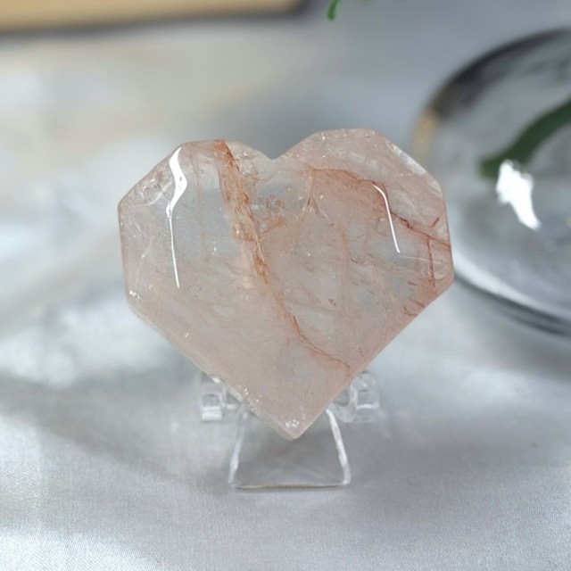 Flammekvarts, også kjent som Hematitt Kvarts eller Fire Quartz, er en kombinasjon av klar kvarts og jernoksid. Det er nettopp jernet som skaper de flammende innslagene i rødt, oransje og rosa nyanser, og gir krystallen sitt levende uttrykk.
