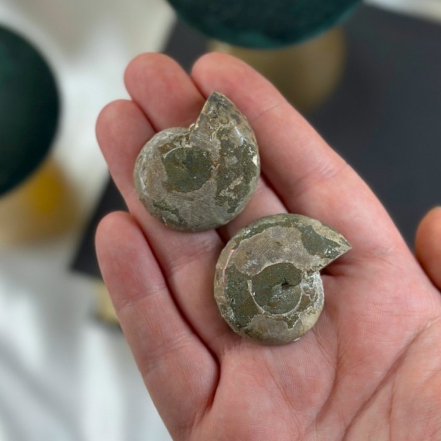 Ammonitt er ikke bare en fossil - det er et flere hundre millioner år gammelt kunstverk fra havets dyp. En spiralformet skapning fra dinosaurenes tid, bevart i stein og fylt med jordens historie, kraft og mystikk. Disse er 3,1cm og veier 25g.