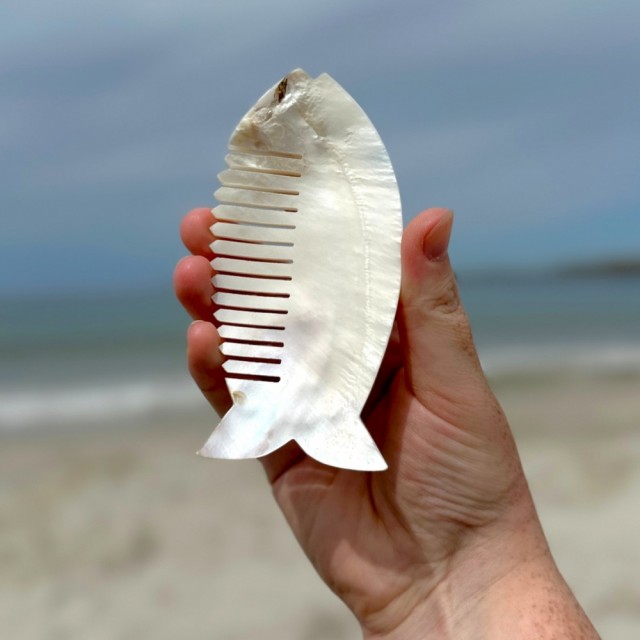 Nydelig kam som er utskjæret i skjell. Disse er til dekorasjon. Lengden på denne her er ca 12,5cm.