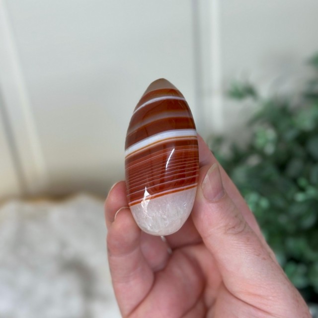 Nydelig juicy Karneol formet som et egg eller kanskje mer som en shiva. Dette er 6,4x3x2,8cm og veier ca 79g. Det er den krystallen du ser på bildene du får hvis du bestiller denne. OBS: Bildene er tatt i studiolys.