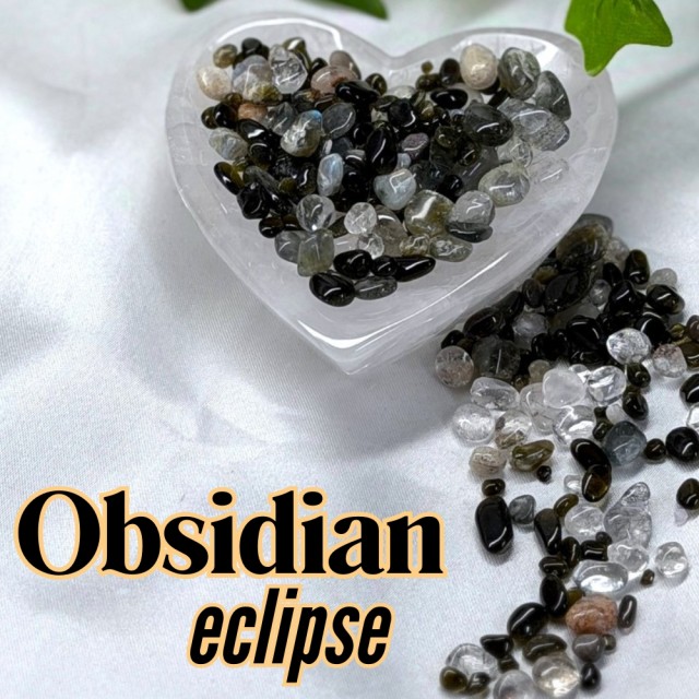 Obsidian Eclipse er en kraftfull krystallmix med mørke toner og subtile skimmer som fanger lyset på uventede måter. Denne miksen kombinerer det jordnære og det mystiske, og skaper en følelse av dybde, beskyttelse og indre styrke.
