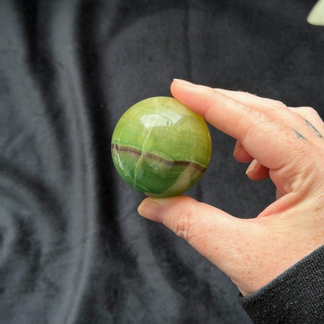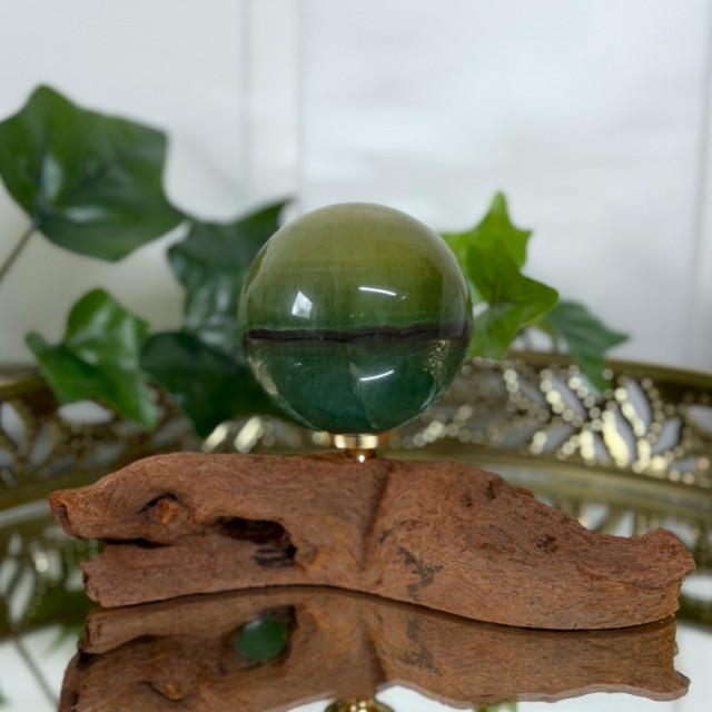 Grønn & Gul Fluoritt er også kjent som en energiforsterker. Den sprer frisk, positiv energi i rommet og beskytter mot mental overbelastning. Energien føles som å åpne et vindu i et tett rom - plutselig strømmer frisk luft og klarhet inn.