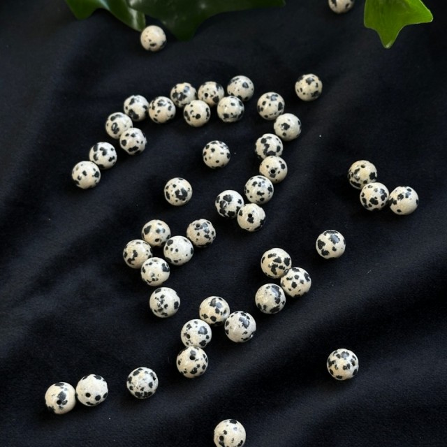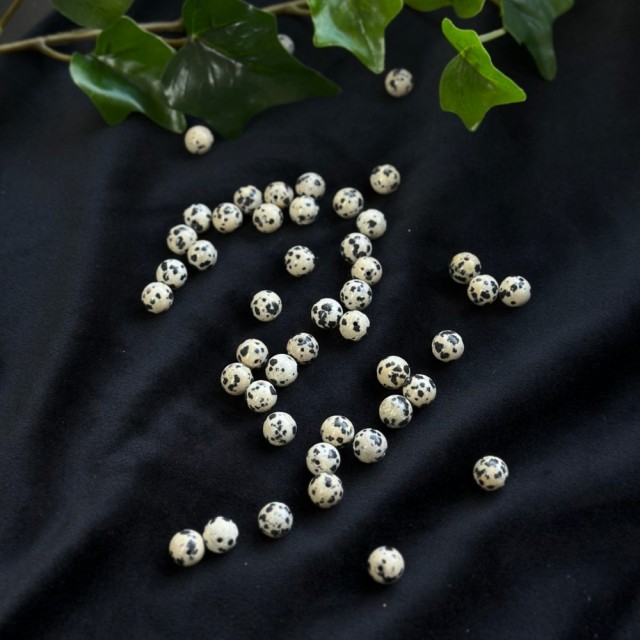 "Dalmatisk stein", også kalt "Dalmatisk jaspis", er et hvitt til kremfarget materiale med svarte flekker. Den minner folk om den dalmatiske hunderasen – og det er derfra den har fått navnet sitt.