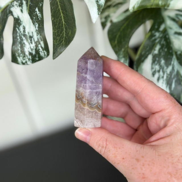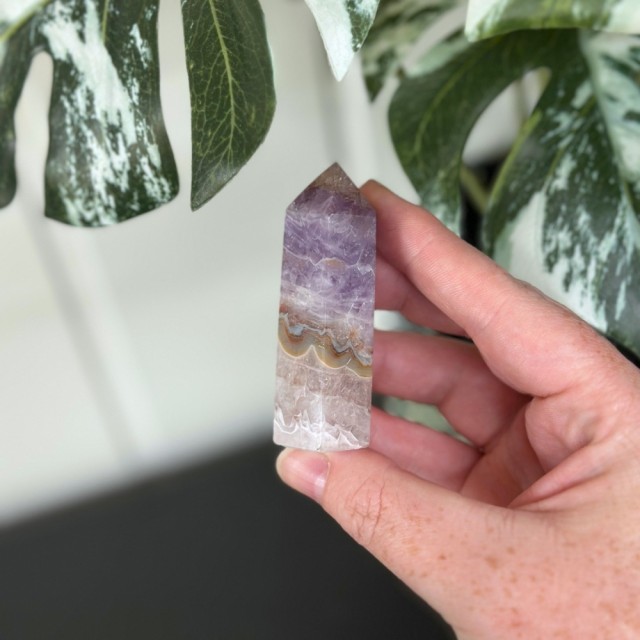 Ametyst med Meksikansk Blondeagat er en krystall for både sinn og sjel - en perfekt forening av ametystens rolige, spirituelle energi og agatens livlige jordkraft. Der ametyst åpner for intuisjon, indre ro og visdom, tilfører blondeagaten glede, stabilitet og en varmende energi som løfter humøret.