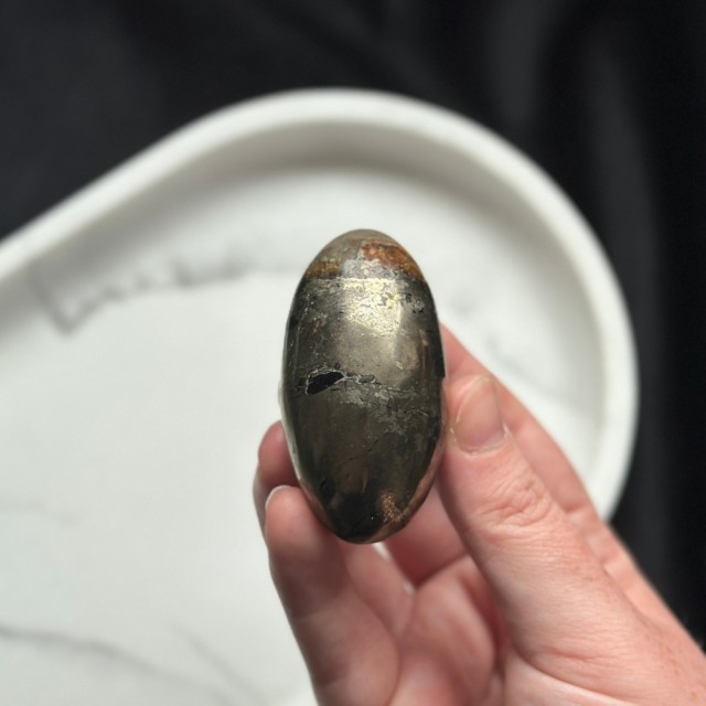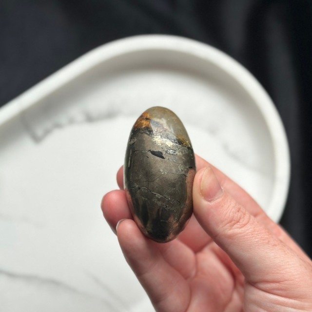 Nydelig unik blanding av Golden Healer og Pyritt shiva. Denne veier ca 141g og er 6,1cm lang. Det er den krystallen du ser på bildene du får hvis du bestiller denne. Små merker kan forekomme.