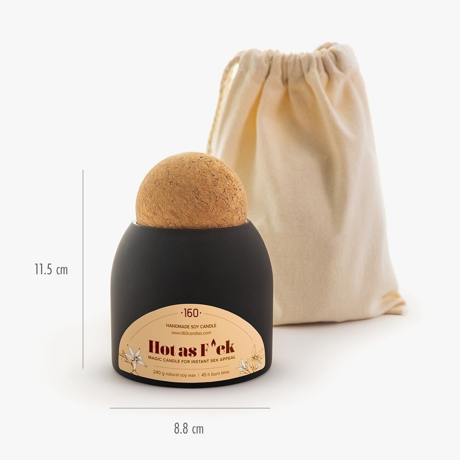 Lyset er håndstøpt i borosilikatglass, kjent for sin klarhet, letthet og imponerende varmebestandighet. Soyalysmassen brenner sotfritt og rent, mens den 100% bomullsveken gir en stabil flamme som sprer duften jevnt. Duftoljen er naturlig og nøye balansert for å skape en atmosfære av varme, sensualitet og kompromissløs attitude.