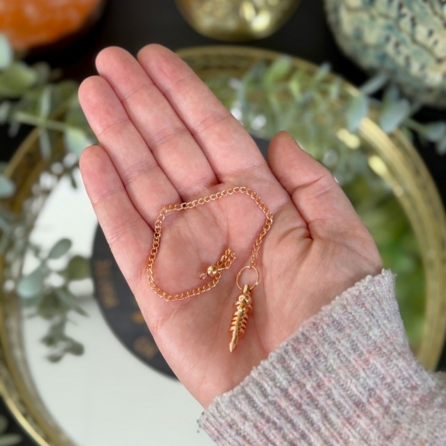 Isis Mini Pendel - Kobber er en elegant og detaljert metallpendel med en karakteristisk form inspirert av den klassiske Isis-designen. De markerte ringene på kroppen symboliserer styrke og energiflyt, og mange opplever denne formen som ekstra presis ved energiarbeid.