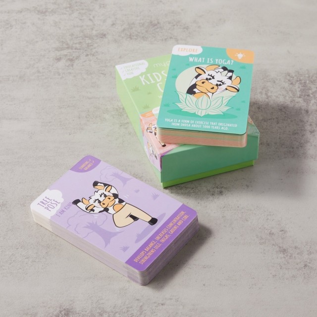 52 kort med yogaøvelser, pusteøvelser, aktiviteter og små fakta