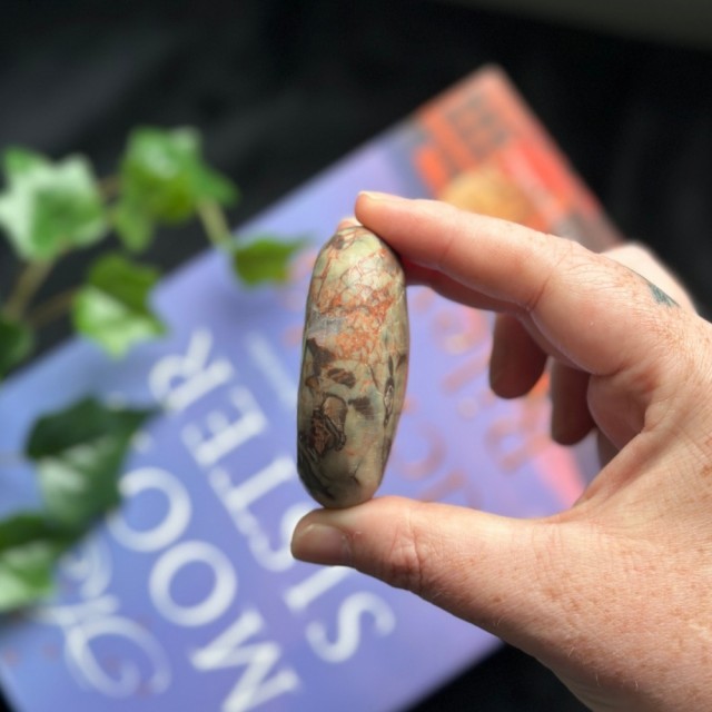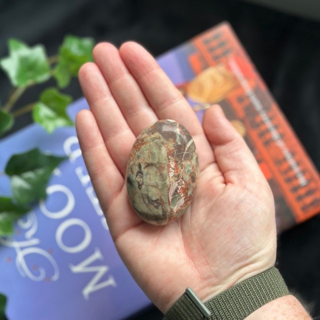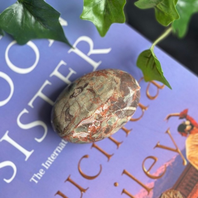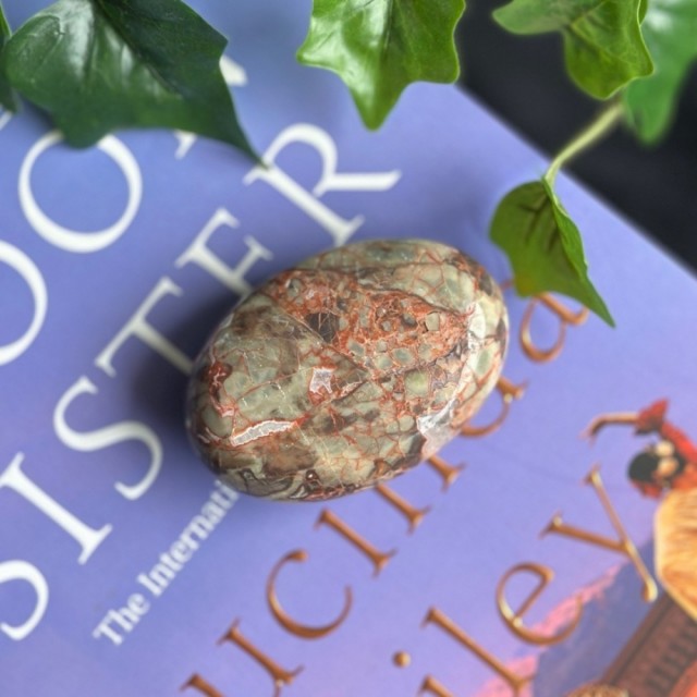 Money Agate/Indonesisk Blodstein håndstein. Denne er 6,2x4,2x2,3cm og veier ca 87g. OBS: Naturlige groper og merker forekommer. Det er den krystallen på bildene du får hvis du bestiller denne.