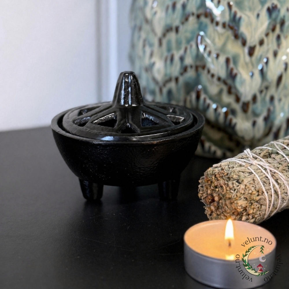 Denne vakre jerngryten med lokk er både dekorativ og funksjonell - en liten kraftkilde til dine ritualer, renselser og rolige stunder.