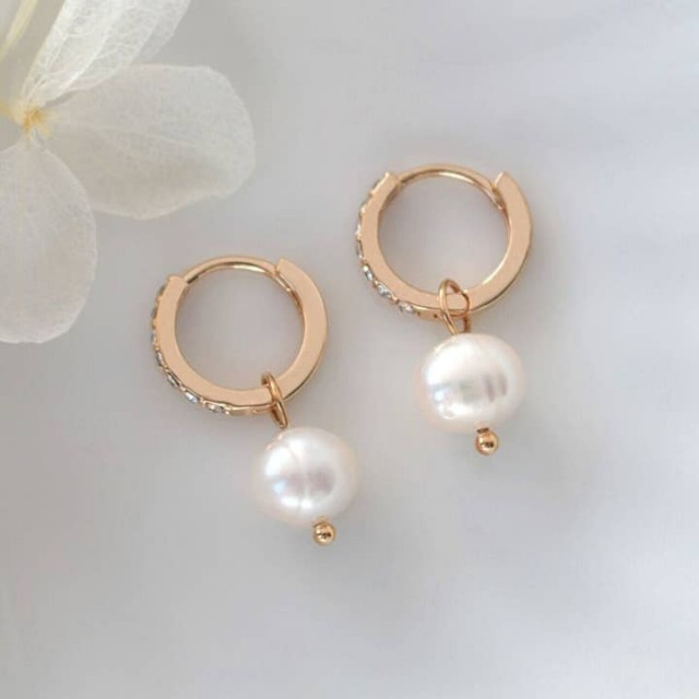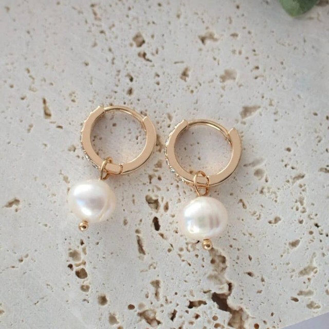 Søte perle-øredobber med naturlige barokke ferskvannsperleperler og kubisk zirkonia innebygd i ringene. Disse perlebøydopingene er av høy kvalitet, laget av 18 karat gult gullbelagt kobber og ekte og naturlige barokke ferskvannsperler. De er svært komfortable og lette øredobber, de kan brukes daglig eller ofte, i tillegg er de hypoallergeniske (vennlige med sensitiv hud) og nikkelfrie. Svært allsidige og trendy bøydopinger som er perfekte å kombinere med mange typer antrekk som elegante, avslappede, estetiske og minimalistiske.