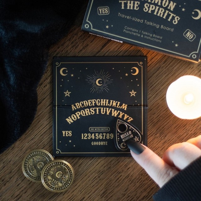 Det lille brettet er designet i svart med gull - en klassisk kombinasjon som bærer magi og eleganse. Når du legger boksen på bordet, lukker øynene dine et øyeblikk og lar fingrene hvile lett på planchetten, fylles rommet med forventning. Det er ikke et profesjonelt verktøy for å kontakte “det hinsidige”, men et verktøy for refleksjon, moro og personlig magi.