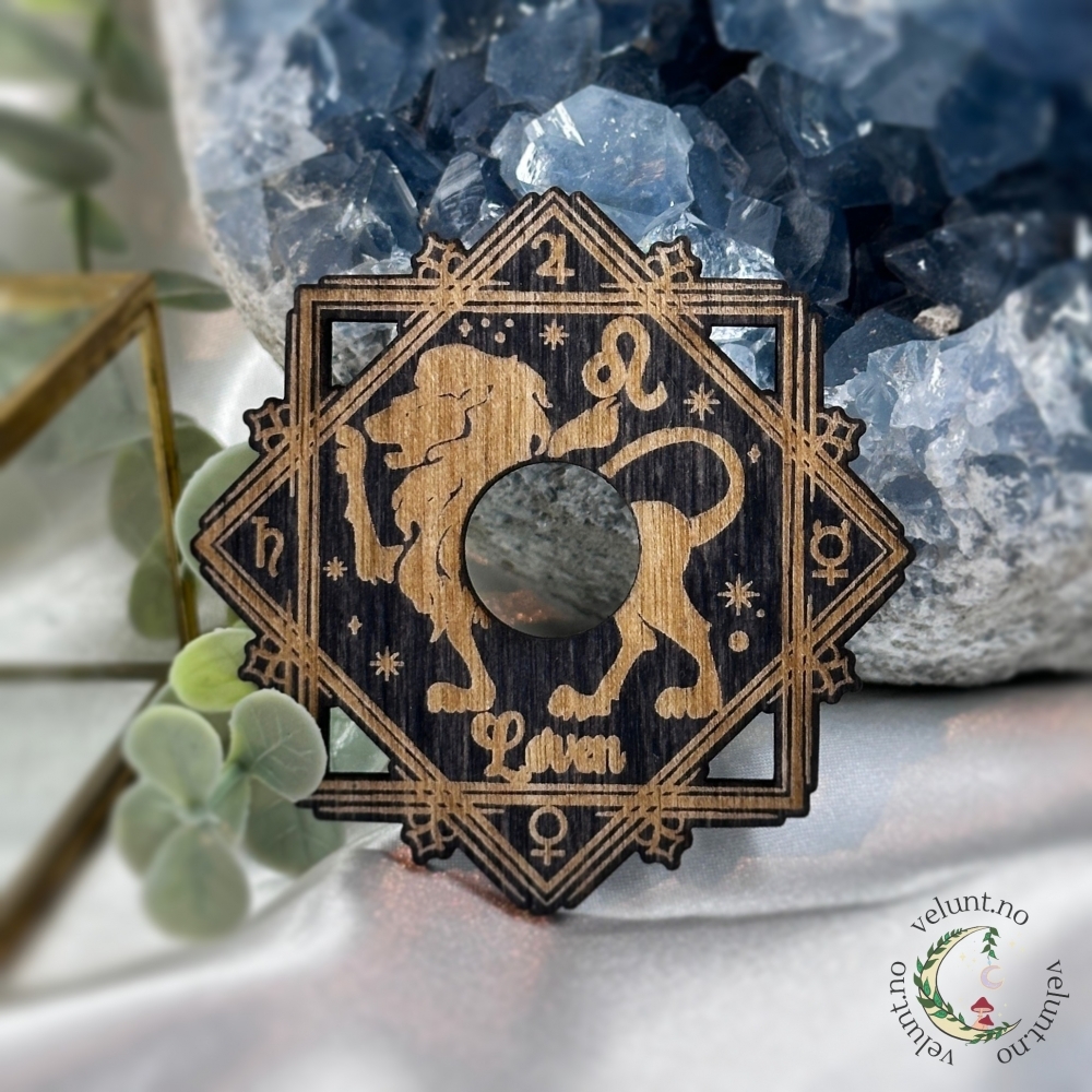 Krystallholderen er ca 7 cm bred, laget i tre og passer kuler på 2–3 cm. Hver eneste er designet og produsert av Vel Unt – med kjærlighet, magi og stor respekt for både astrologi og håndverk.