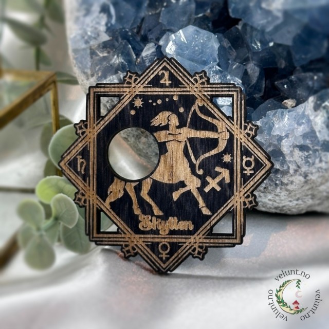 Krystallholderen er ca 7 cm bred, laget i tre og passer kuler på 2–3 cm. Hver eneste er designet og produsert av Vel Unt – med kjærlighet, magi og stor respekt for både astrologi og håndverk.