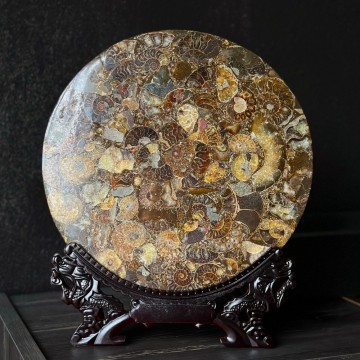 Unik blå skatt fra havets dyp. Den har intrikate fossiliserte mønstre og myke oseaniske fargetoner, noe som gjør den til en vakker blanding av naturhistorie og visuell tekstur. Perfekt for samlere, utstilling eller som et unikt tillegg samlingen din.